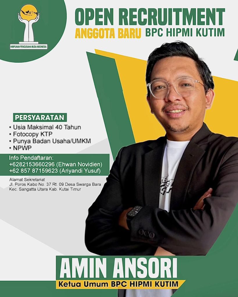 Sangatta, thelimit.id – Himpunan Pengusaha Muda Indonesia (HIPMI) Cabang Kutai Timur, kini kembali membuka pendaftaran anggota baru. Pendaftaran ini ditujukan untuk seluruh masyarakat yang memiliki badan usaha atau UMKM agar dapat bergabung, dalam organisasi yang berfokus pada pengembangan pengusaha muda di Kutai Timur.